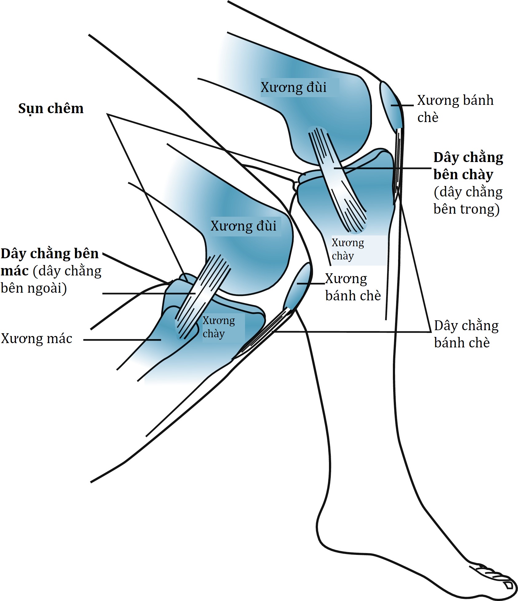 Hình 24.3 Các mốc chính trong khám đầu gối.