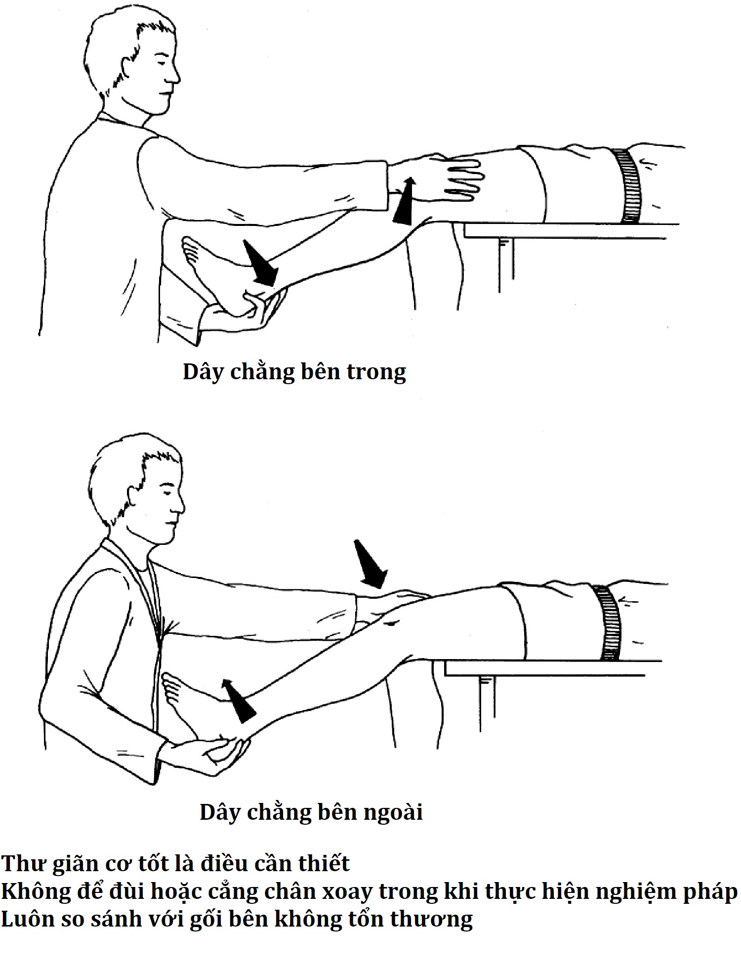 Hình 24.5 Các nghiệm pháp kiểm tra sự ổn định của dây chằng bên.