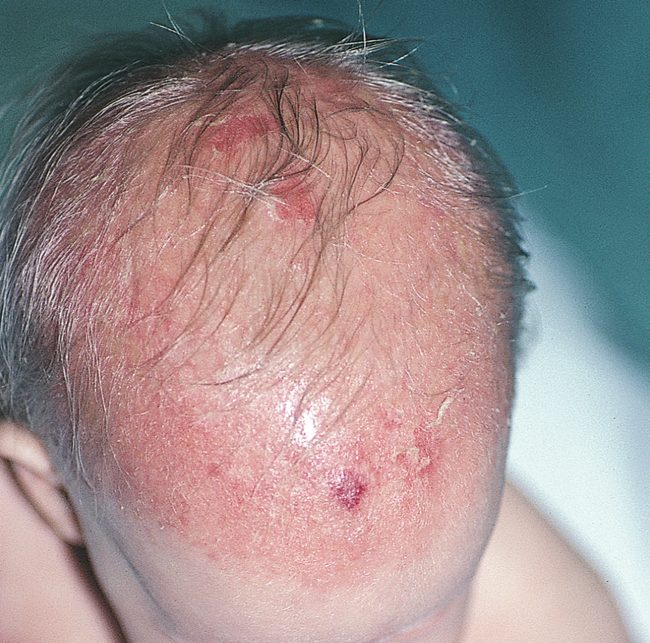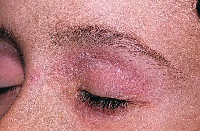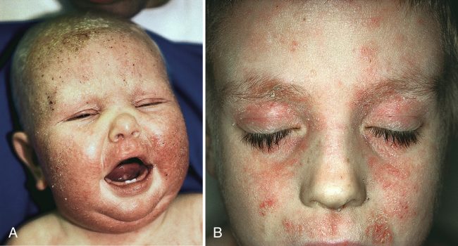 Hình 29.9 Viêm da cơ địa ở trẻ sơ sinh (Infantile atopic dermatitis) ở mặt.