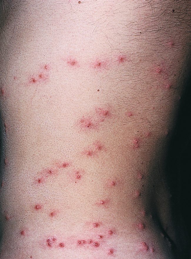 Sẩn bị viêm Thường ở thân mình. Phân nhóm Ngứa; vết cắn của bọ chét thường phân nhóm Ở người lớn, ruồi cát và bọ chét ở cẳng chân dưới. Ở trẻ em, vết cắn của bọ chét có thể ở bất cứ đâu Bệnh ghẻ. Phát ban do thuốc. U lympho Côn trùng cắn
