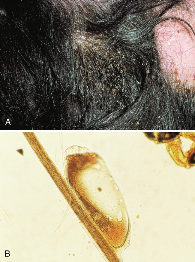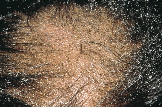 Da đầu Trứng rận kích thước bằng đầu kim trên thân tóc. Nhiễm khuẩn có thể chồng lên. Ngứa Phổ biến hơn ở trẻ em nhưng có thể xảy ra ở người lớn Viêm da tiết bã. Nhiễm khuẩn Bệnh rận đầu