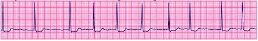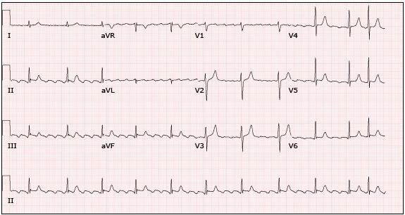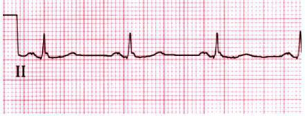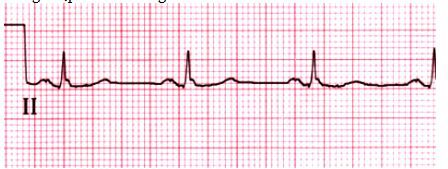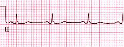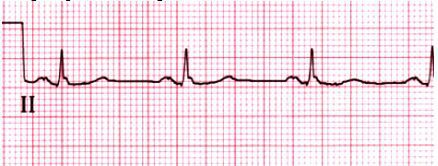 Băng nhịp ở chuyển đạo II bình thường. Khoảng PR là 0.15 sec và khoảng thời gian của phức bộ QRS là 0.08 sec. Cả hai các sóng P và T là quay lên. Courtesy of Morton F Arnsdorf, MD.