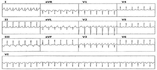 ECG chuyển đạo đơn nhận thấy nhịp nhanh thất đơn hình (monomorphic ventricular tachycardia)