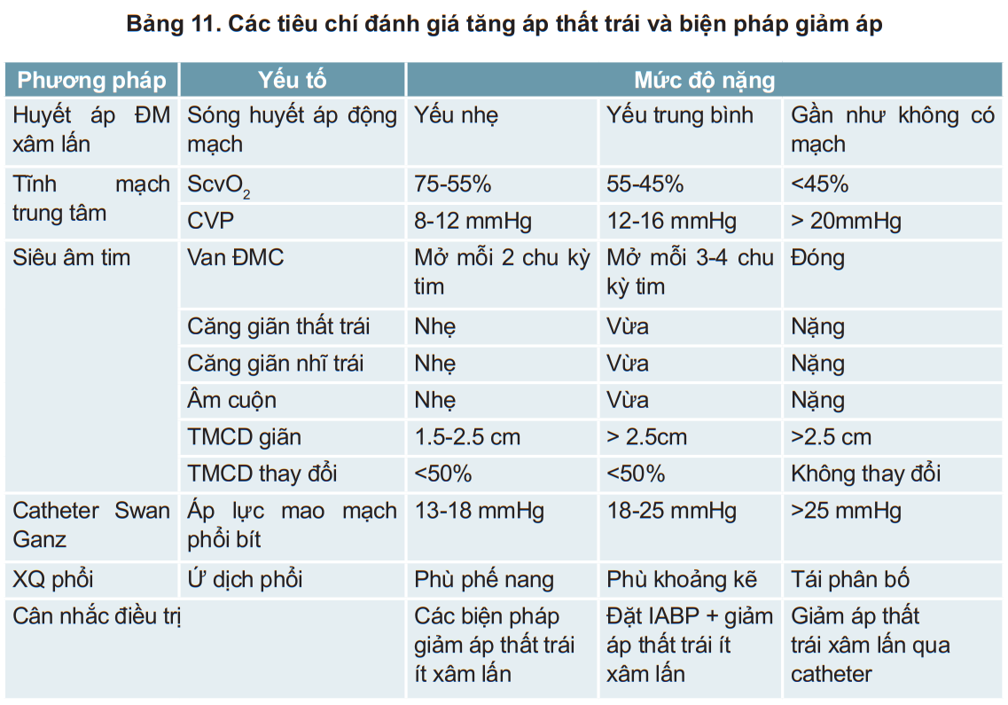 Các biện pháp giảm áp thất trái cơ học bao gồm: đặt thiết bị hỗ trợ thất trái LVAD (Impella; Abiomed, Danvers, MA), phá vách liên nhĩ hoặc đặt dẫn lưu thất trái trực tiếp vào mỏm tim. Bóng đối xung động mạch chủ cùng với thuốc trợ tim có thể hỗ trợ giảm áp thất trái.