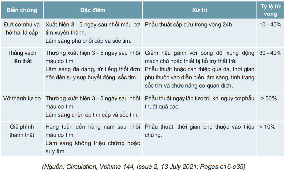 Bóng đối xung động mạch chủ nên được cân nhắc ở bệnh nhân nhồi máu cơ tim cấp có biến chứng cơ học (mức khuyến cáo IIa), đặc biệt là thủng vách liên thất.