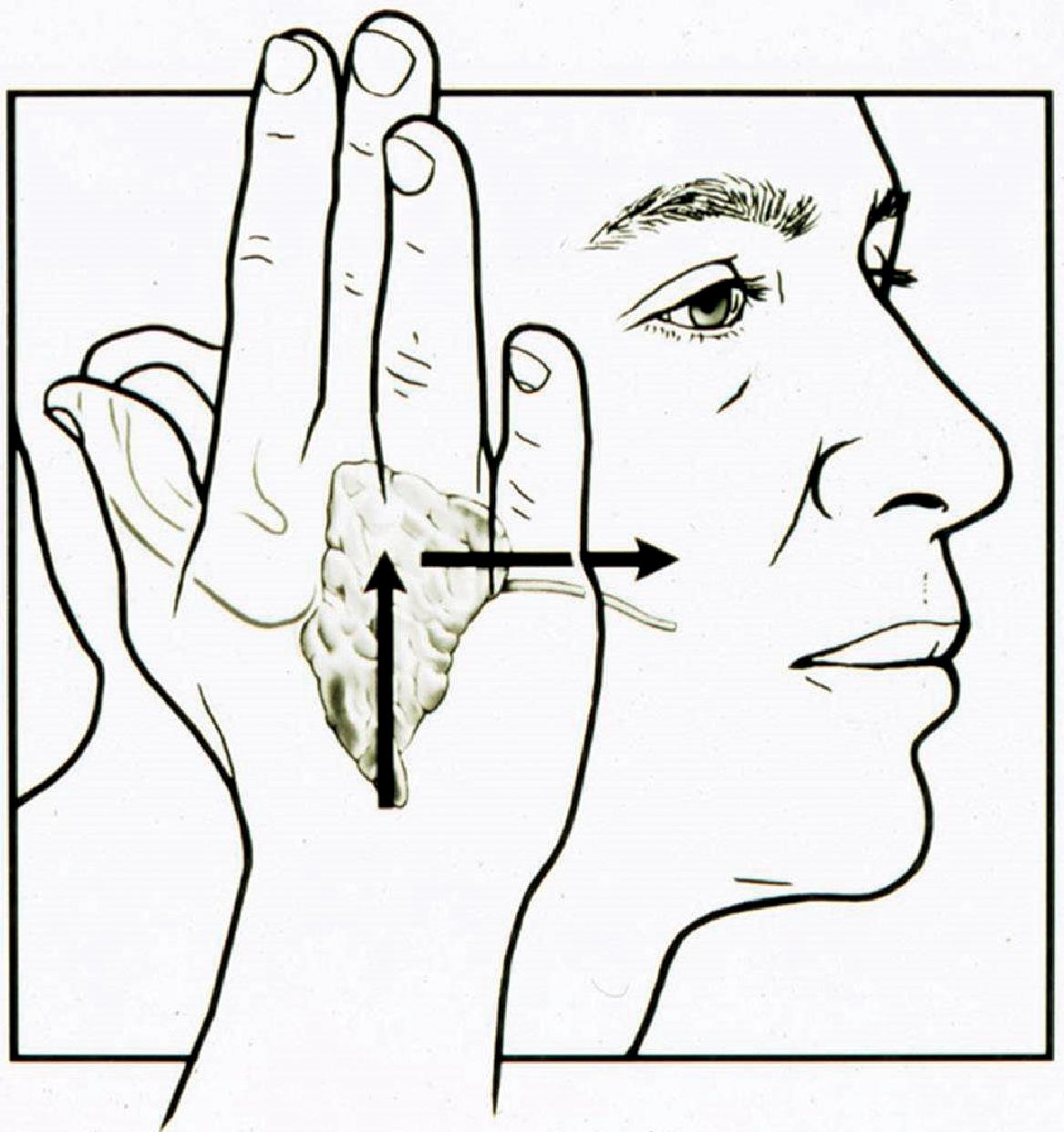 Hình 9.6 Phương pháp xoa bóp tuyến mang tai.