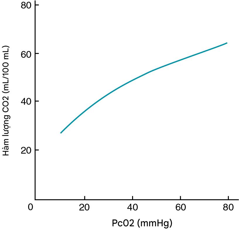 Tương tự như đường cong phân ly oxyhemoglobin mô tả mối quan hệ giữa và hàm lượng của máu, có thể xây dựng một đường cong liên quan đến tổng hàm lượng với của máu. Tuy nhiên, trong phạm vi áp suất khí gặp trong các hoàn cảnh sinh lý, mối quan hệ -hàm lượng gần như tuyến tính so với mối quan hệ cong của và hàm lượng (Hình 1.6).