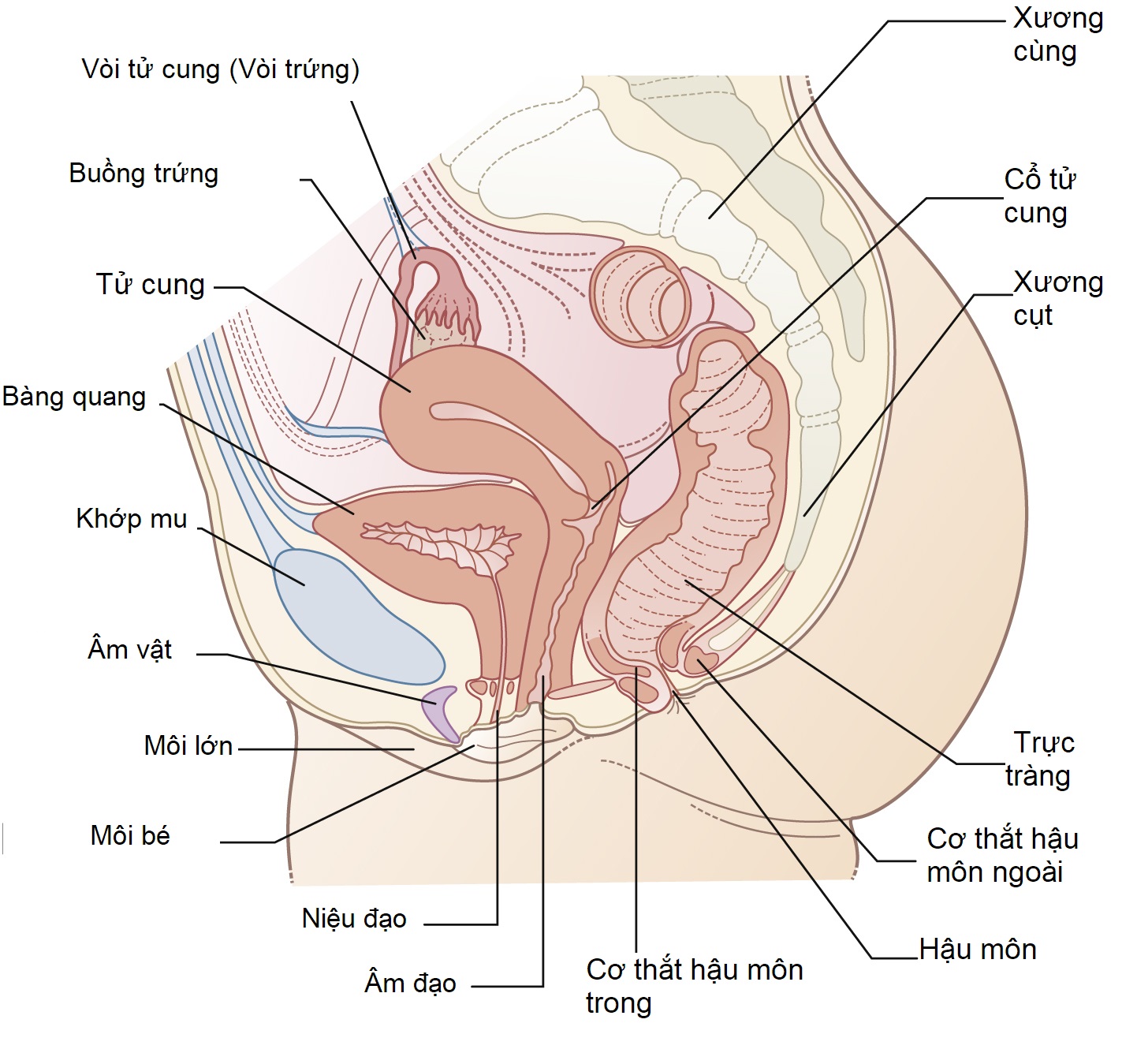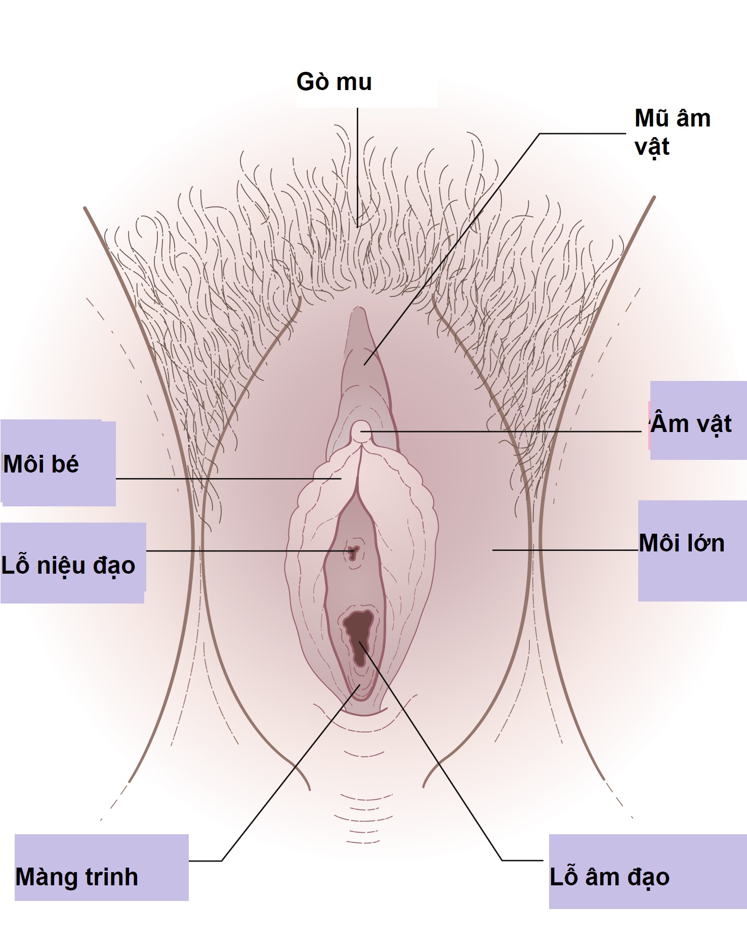 Thuật ngữ âm hộ thường được dùng để mô tả cơ quan sinh dục ngoài của phụ nữ và bao gồm gò mu, môi lớn, môi bé, âm vật, lỗ niệu đạo ngoài, tiền đình âm đạo, lỗ âm đạo và màng trinh (Hình 1.2).