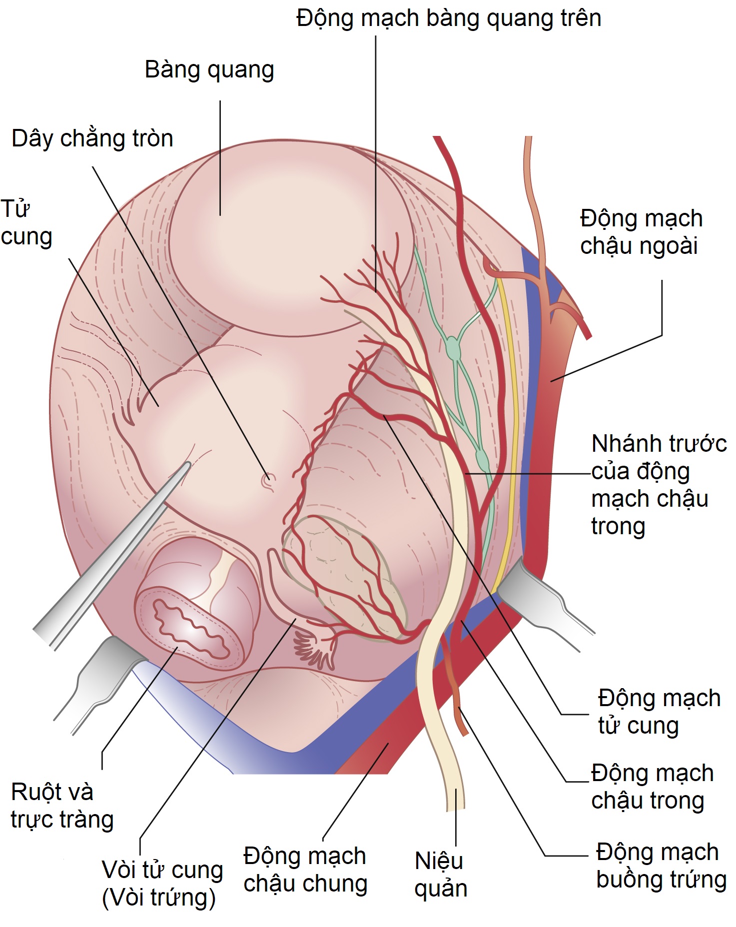 Sự phong phú của các mối nối giữa các mạch tử cung và buồng trứng có nghĩa là có thể thắt cả hai động mạch chậu trong để giảm chảy máu từ tử cung mà vẫn duy trì sự sống của các cơ quan vùng chậu bằng cách tăng lưu lượng máu qua các mạch buồng trứng.