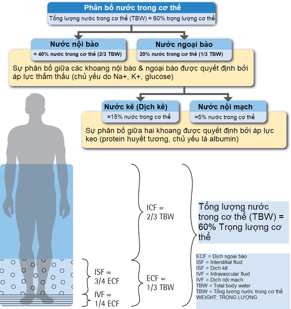ISF: Dịch kẽ IVF: Dịch nội mạch ICF: Dịch nội bào ECF: Dịch ngoại bào TBW: Tổng lượng nước cơ thể