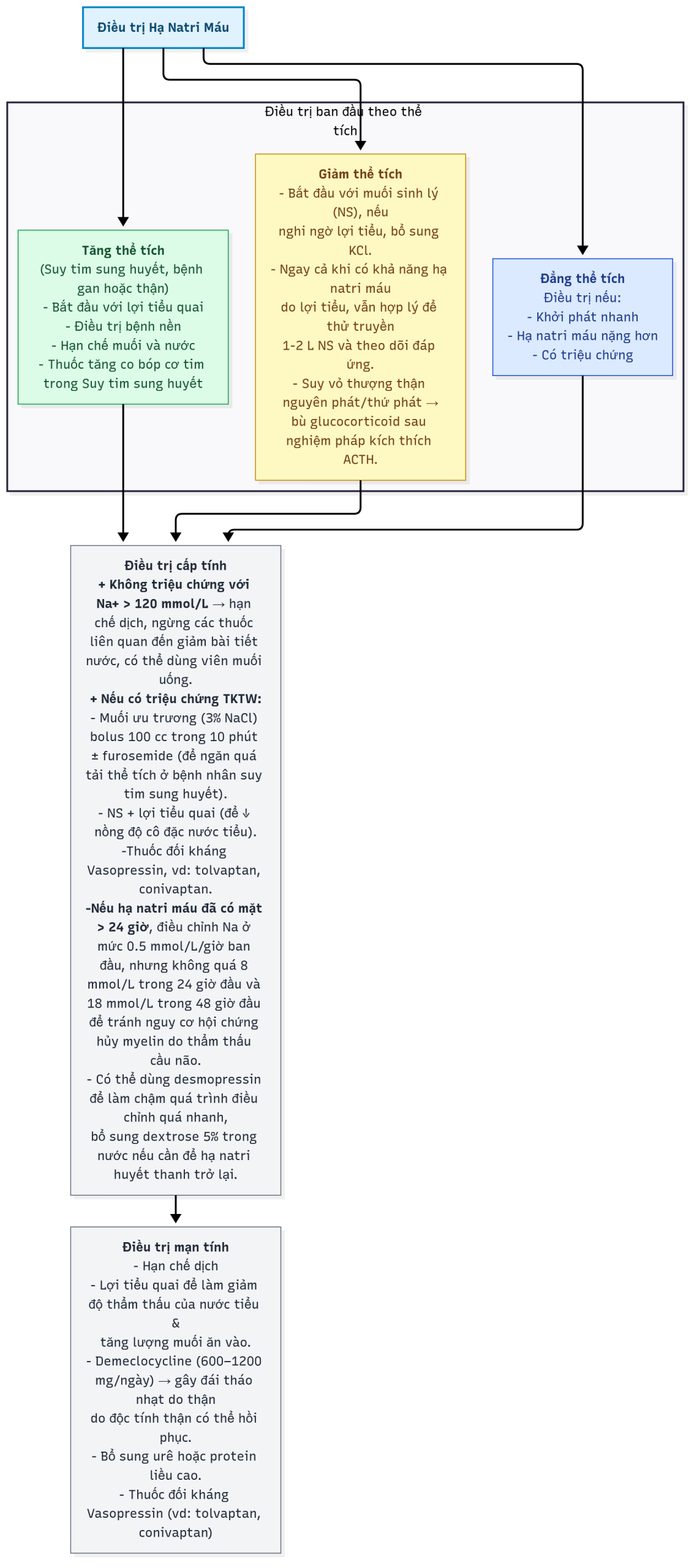 - Giảm nồng độ Na+ ≤ 1 mmol/L/giờ (≤ 1 mEq/L/giờ) nếu có triệu chứng ban đầu, nhưng không giảm Na+ quá 12 mmol/L/ngày.