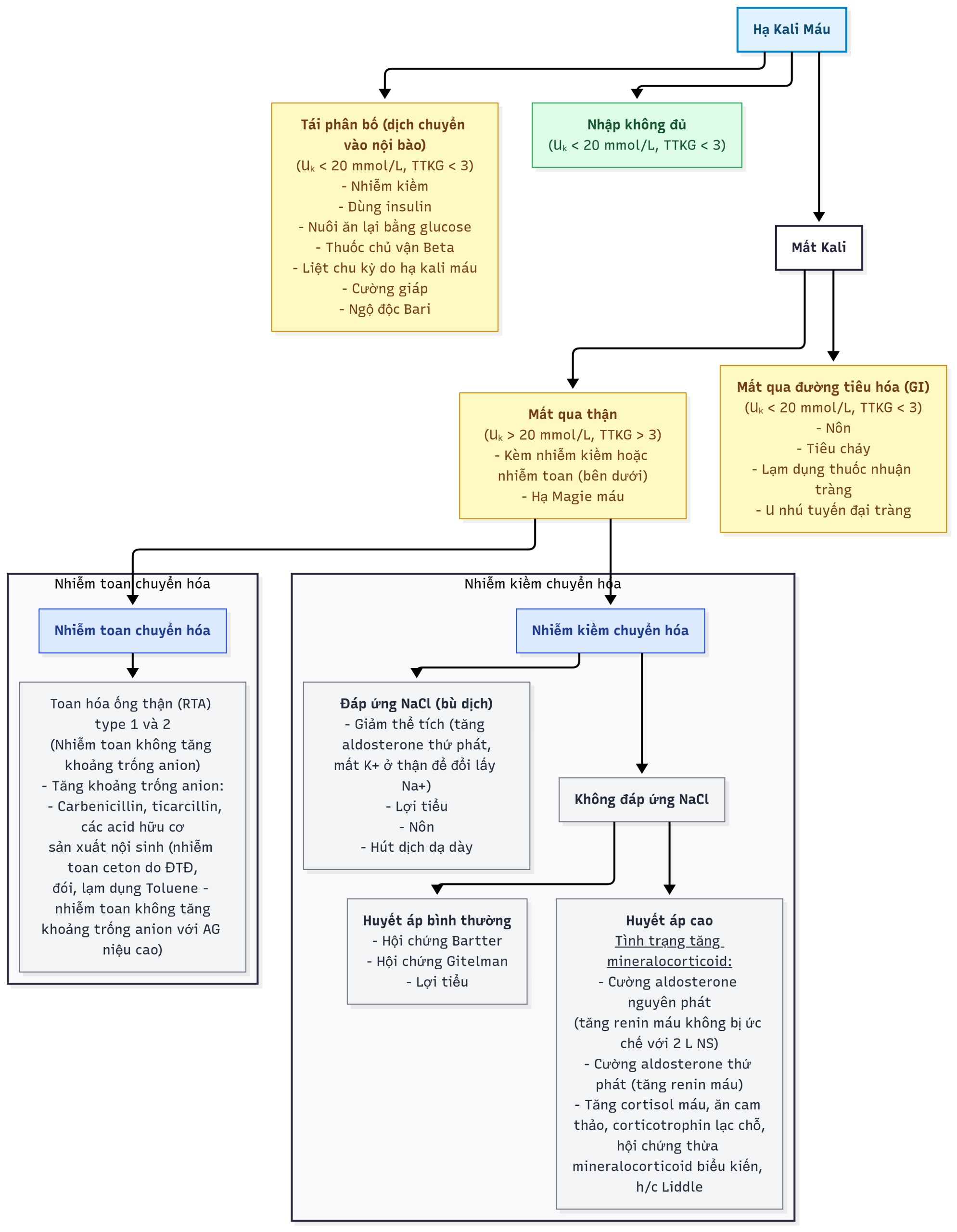 Tăng lượng nhập | Giảm bài tiết qua thận | Tái phân bố từ nội bào ra ngoại bào |