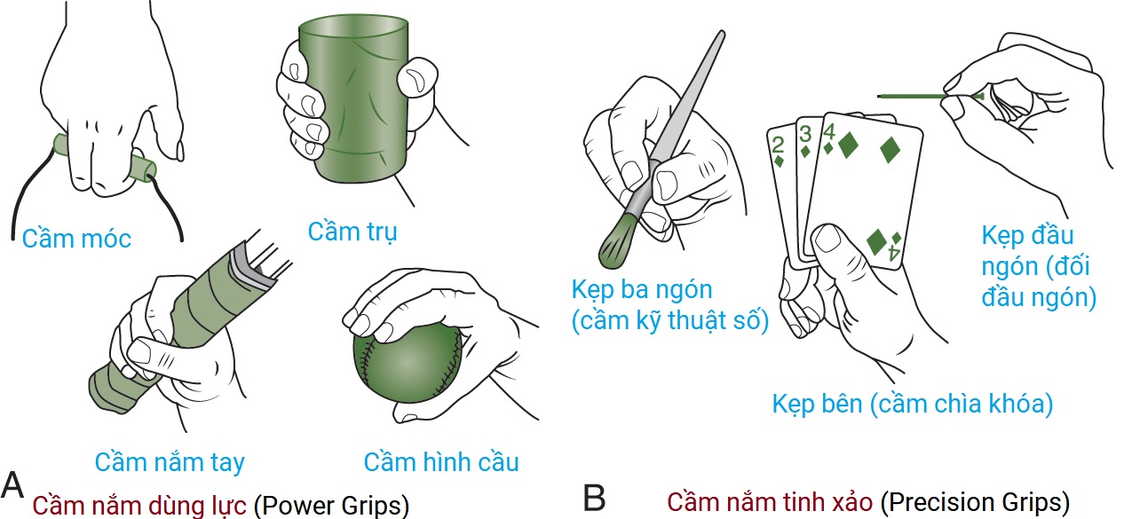 Hình e11.1: Cầm nắm Mạnh (dùng lực) và Cầm nắm Chính xác (tinh xảo)