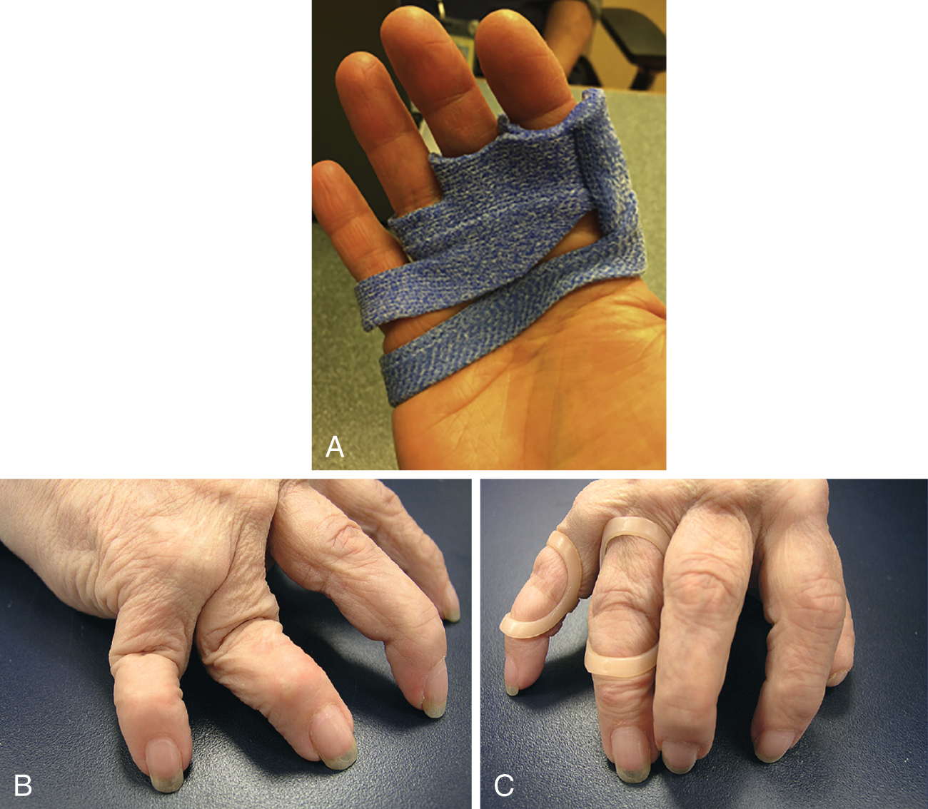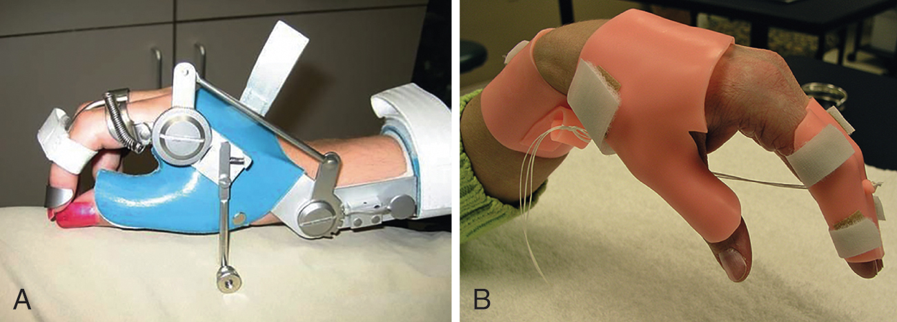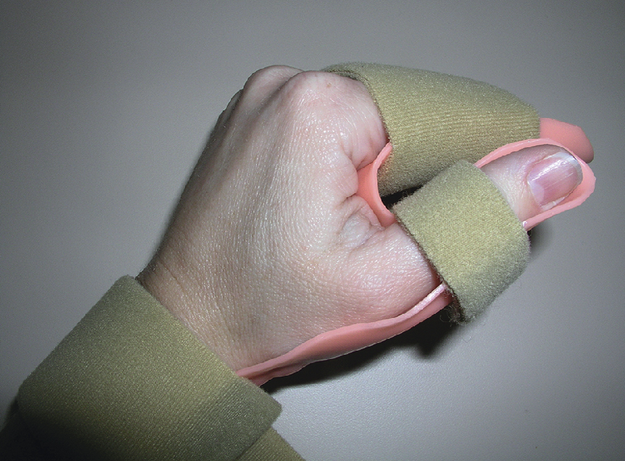 Bong gân ngón tay: dụng cụ chỉnh hình duỗi ngón tay giữ khớp gian đốt gần ở tư thế duỗi nhưng cho phép gập khớp gian đốt xa