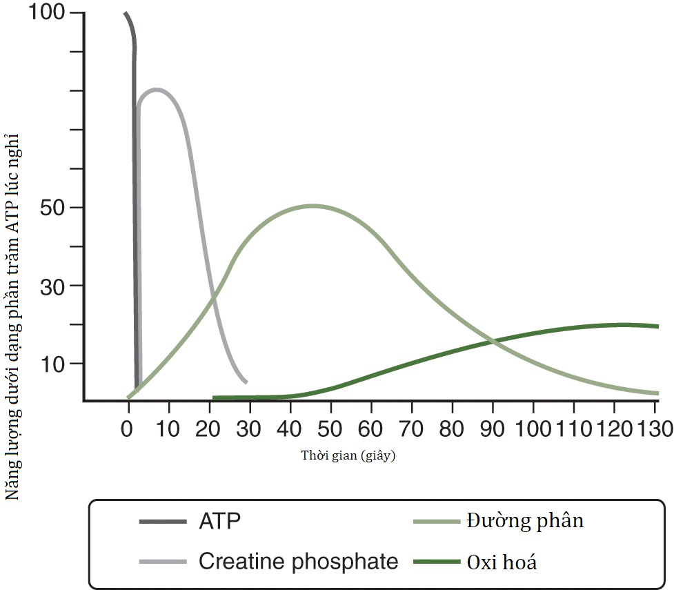 Năng lượng cần thiết để cung cấp cho các quá trình sinh học được tạo ra từ sự phân hủy của adenosine triphosphate (ATP). Có một lượng dự trữ ATP hạn chế trong cơ xương, có thể cung cấp một đợt bùng nổ năng lượng tức thời cho bài tập cường độ cao trong 5 đến 10 giây. Việc sản xuất ATP tiếp theo có thể xảy ra thông qua ba con đường trao đổi chất: hệ ATP-creatine phosphate, Đường phân nhanh, và oxy hóa hiếu khí.