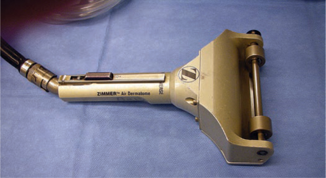 Phù nề vết thương, vảy cứng và chất lỏng cần thiết để hồi sức sau chấn thương bỏng có thể làm tăng nguy cơ phát triển hội chứng khoang, trong khi vảy trên thân mình có thể hạn chế hô hấp. Cắt vảy ở các chi và thân mình có thể ngăn ngừa những vấn đề này. Các vị trí phẫu thuật vẫn để hở và cần một thủ thuật thứ cấp để đóng lại sau đó. Sau khi cắt vảy, chi phải được nâng cao và nẹp ở tư thế trung tính trong 24 giờ trước khi bắt đầu vận động thụ động. Cắt bỏ sớm mô hoại tử và vảy, kết hợp với ghép da tự thân, mỏng, đã cải thiện đáng kể tỷ lệ sống sót sau chấn thương bỏng. Da của người cho được lấy bằng cách sử dụng một dao bào da có động cơ (xem Hình 26.7) và được đặt trên nền vết thương đã được chuẩn bị phẫu thuật, nơi nó được giữ cố định bằng ghim, chỉ khâu hoặc keo dán da. Sau đó, một băng nén sau phẫu thuật được áp dụng lên vùng ghép da. Để cải thiện sự bám dính của mảnh ghép da, vị trí được ghép thường được bất động trong giai đoạn ngay sau phẫu thuật; tuy nhiên, các liệu pháp phục hồi chức năng có thể được bắt đầu vài ngày sau đó để cải thiện chức năng và giảm thời gian nằm viện. Vì chỉ có lớp biểu bì và lớp hạ bì nông được thu hoạch, nên vị trí cho da thường được mong đợi sẽ tự lành trong 2 tuần. Các sản phẩm tại vị trí cho da có thể là loại dạng lưới hoặc dạng tấm (không lưới).