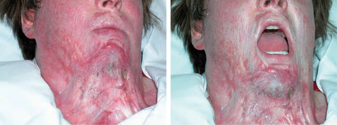 Biến chứng phổ biến nhất. Sẹo lồi, đỏ, đau, ngứa và co rút trong phạm vi của tổn thương ban đầu. Các yếu tố nguy cơ: người trẻ tuổi, sắc tố da sẫm màu hơn, các tổn thương có giai đoạn viêm kéo dài, vết thương hở >3 tuần. Sẹo phì đại.