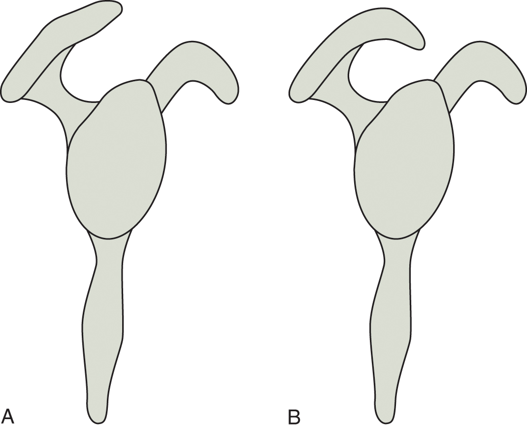 (A) Mỏm cùng vai loại 1. (B) Mỏm cùng vai loại 3. Đại chấn thương hoặc vi chấn thương lặp đi lặp lại và chèn ép là những nguyên nhân chính. Ba loại mỏm cùng vai: loại 1 phẳng, loại 2 cong và loại 3 móc (với tỷ lệ rách chóp xoay cao hơn đối với loại 1 và 3). Triệu chứng và khám thực thể: đau vai trước hoặc bên (trên đầu và vào ban đêm), cứng khớp, yếu cơ chóp xoay, kẹt khớp, có thể mất vững, nghiệm pháp chèn ép Neer-Walsh, nghiệm pháp chèn ép Hawkins-Kennedy. Chẩn đoán: Loại bỏ cơn đau được gây ra sau khi tiêm 10 mL lidocain 1% vào khoang dưới mỏm cùng vai. Đánh giá hình ảnh: Siêu âm và chụp cộng hưởng từ được ưu tiên. Điều trị: bảo tồn, phẫu thuật, liệu pháp sóng xung kích ngoài cơ thể, rửa và hút vôi hóa qua da dưới hướng dẫn của siêu âm.