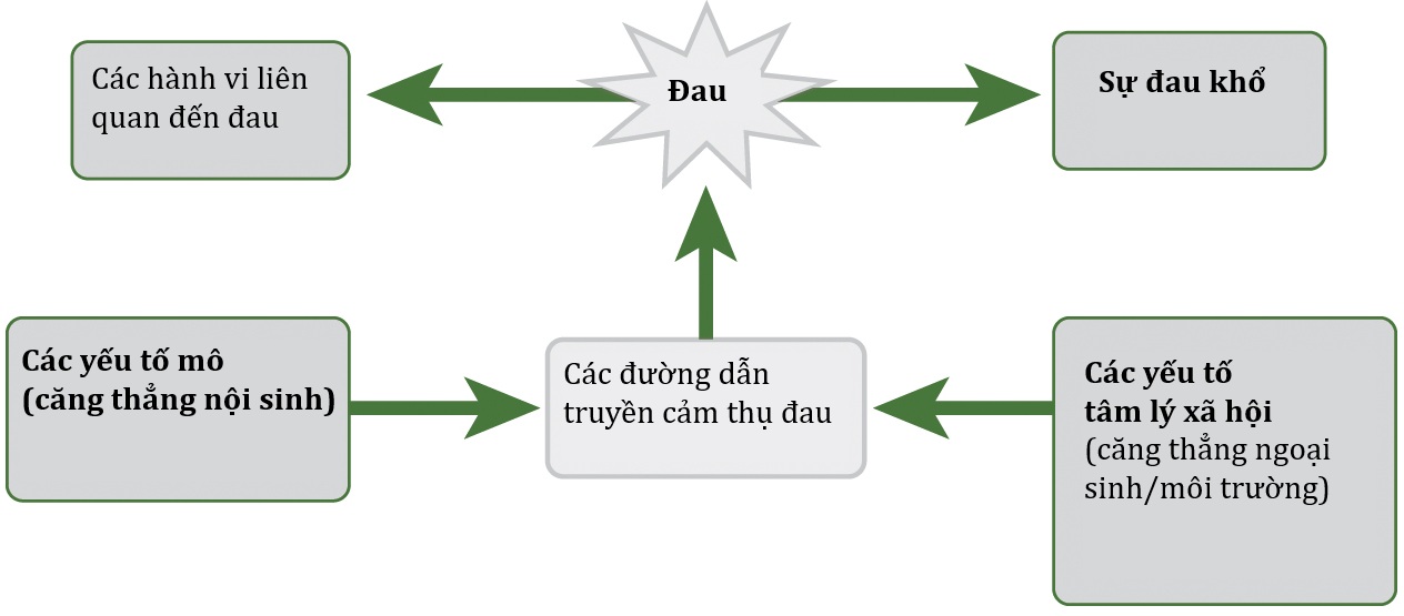• Tương tác giữa kích thích ban đầu của tổn thương mô và trải nghiệm chủ quan về cảm thụ đau và đau cấp tính và mạn tính: chuyển đổi, truyền dẫn, điều biến và nhận thức.