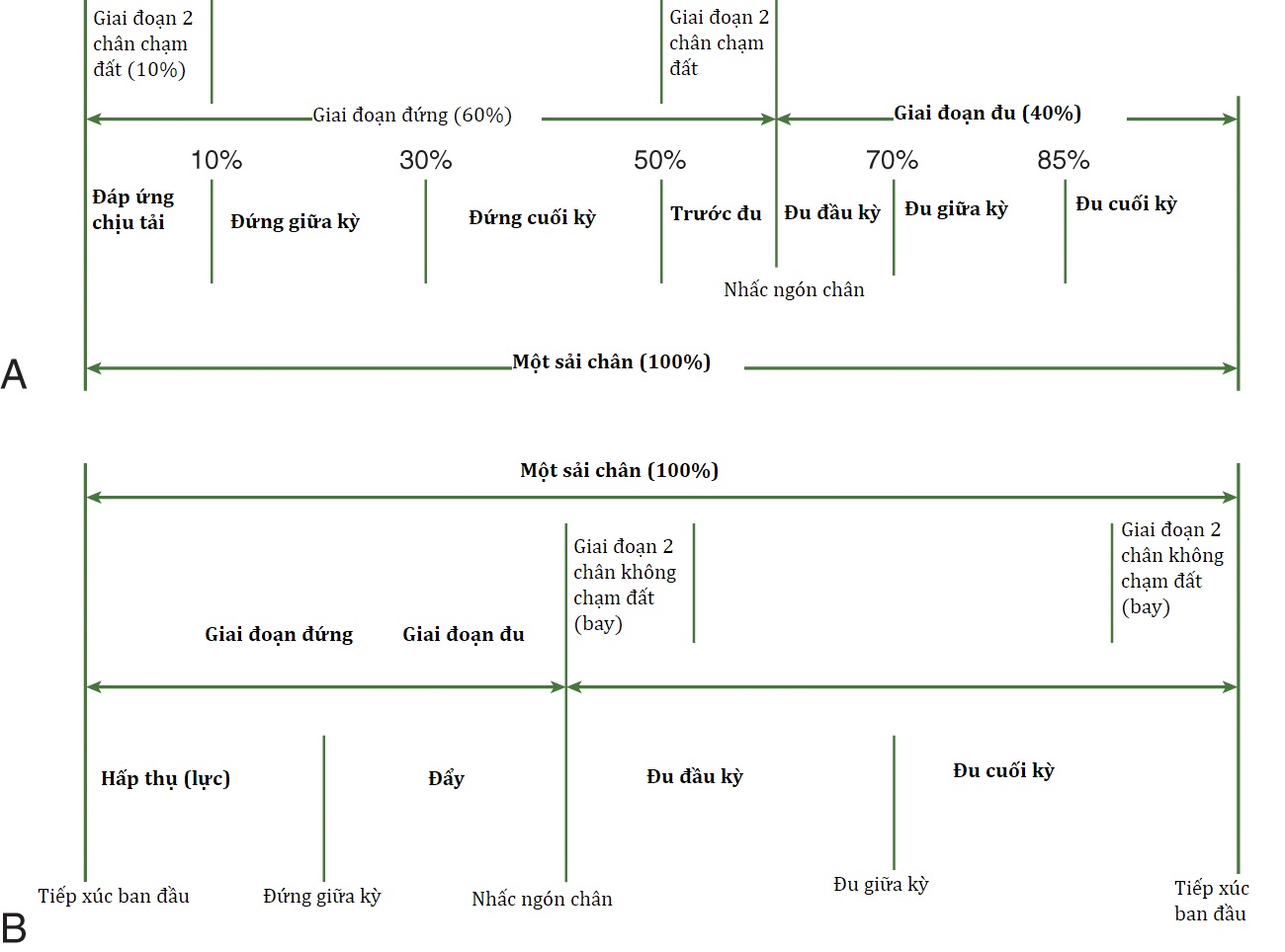 Hình 39.6 Chu kỳ dáng đi (A) và chạy (B)