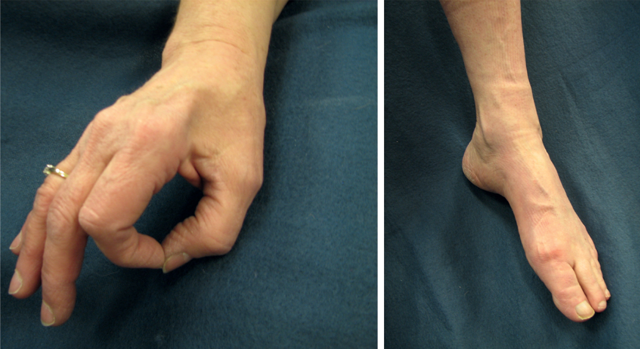 Hình 40.4. Teo cơ chi ưu thế ở ngọn chi ở một bệnh nhân bị bệnh lý thần kinh vận động di truyền ngọn chi, bắt chước bệnh Charcot-Marie-Tooth.