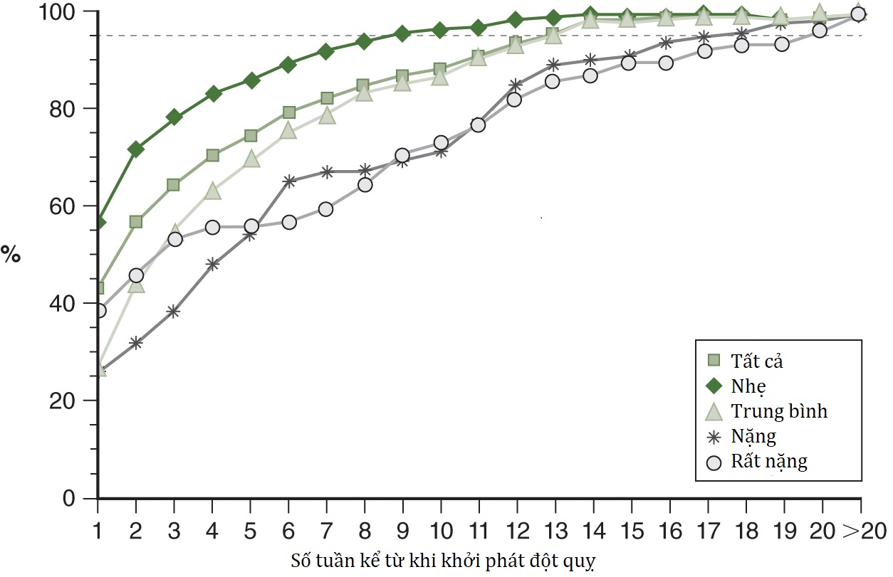 Tỷ lệ tái phát cao nhất trong 30 ngày đầu tiên sau đột quỵ/TIA ban đầu. Khoảng một nửa số đột quỵ tái phát trong vòng 90 ngày xảy ra trong 2 tuần đầu tiên, do đó nhấn mạnh tầm quan trọng của các biện pháp tích cực và theo dõi chặt chẽ trong quá trình phục hồi chức năng nội trú cấp tính.