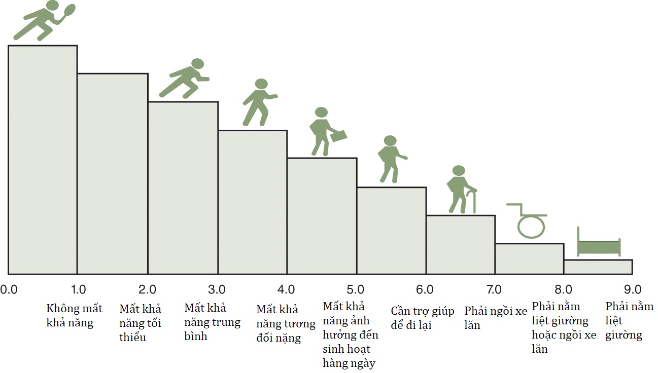 • Thang đo Mức độ Khuyết tật Mở rộng (EDSS) được sử dụng để đánh giá tình trạng khuyết tật.