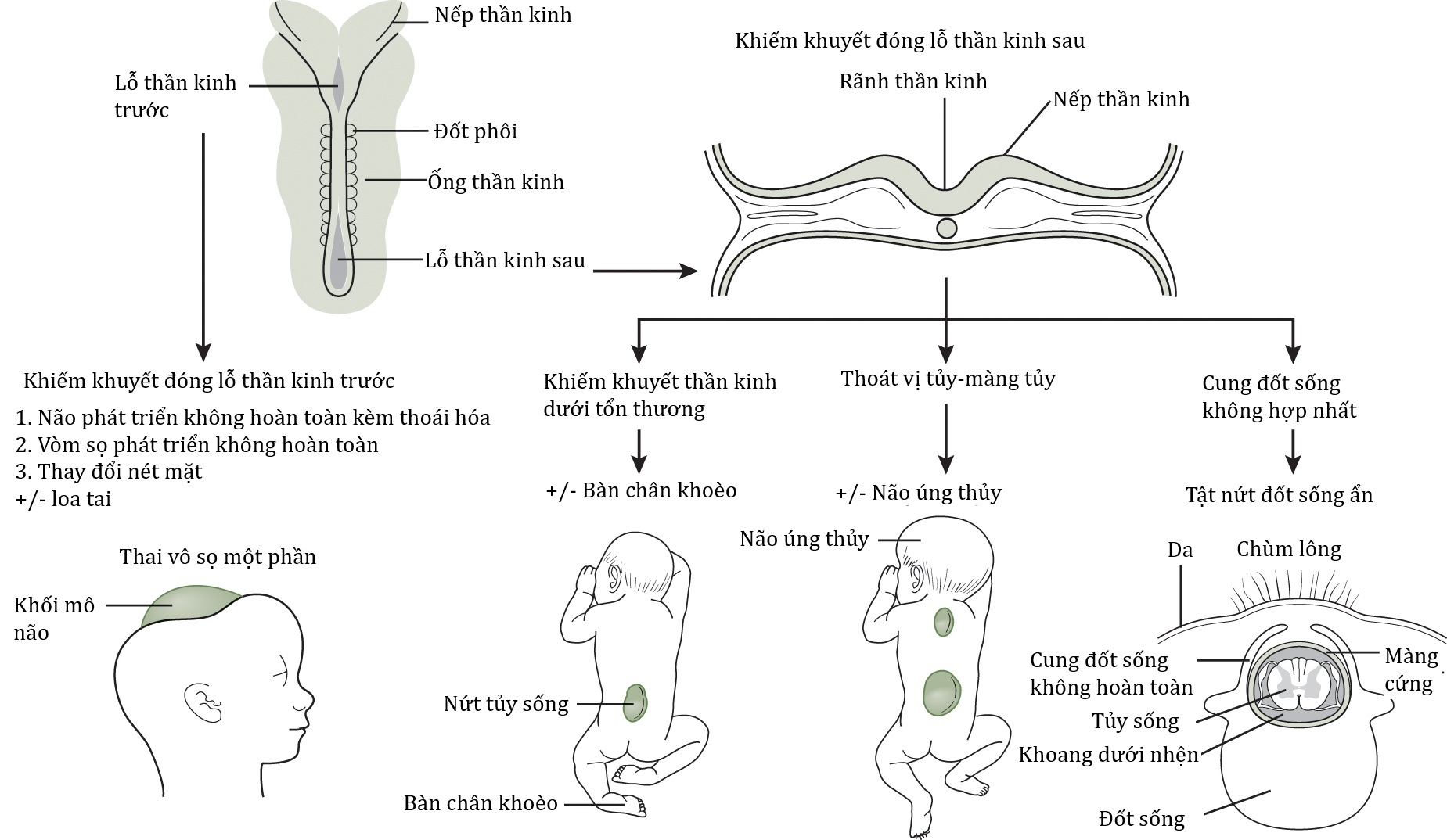 Các khuyết tật ống thần kinh (NTDs) là nhóm khuyết tật bẩm sinh gây tàn tật nặng thứ hai, sau các dị tật tim bẩm sinh. Phổ của NTDs bao gồm từ não vô sọ (anencephaly) và nứt sọ (cranioschisis) đến các rối loạn của quá trình hình thành thần kinh thứ phát gây ra tật nứt đốt sống ẩn (spina bifida occulta) với sự tham gia thần kinh tối thiểu hoặc không có. Thoát vị tủy-màng tủy (MMC) là dị tật bẩm sinh phức tạp nhất tương thích với sự sống. Mặc dù việc sống sót đến tuổi trưởng thành hiện nay là phổ biến với điều trị thích hợp, các vấn đề tâm lý và xã hội phải được giải quyết bắt đầu từ thời thơ ấu. Cần có sự giám sát y tế và giáo dục thận trọng để ngăn ngừa các biến cố đe dọa tính mạng, giảm tỷ lệ mắc bệnh và tử vong, và cải thiện chất lượng cuộc sống.