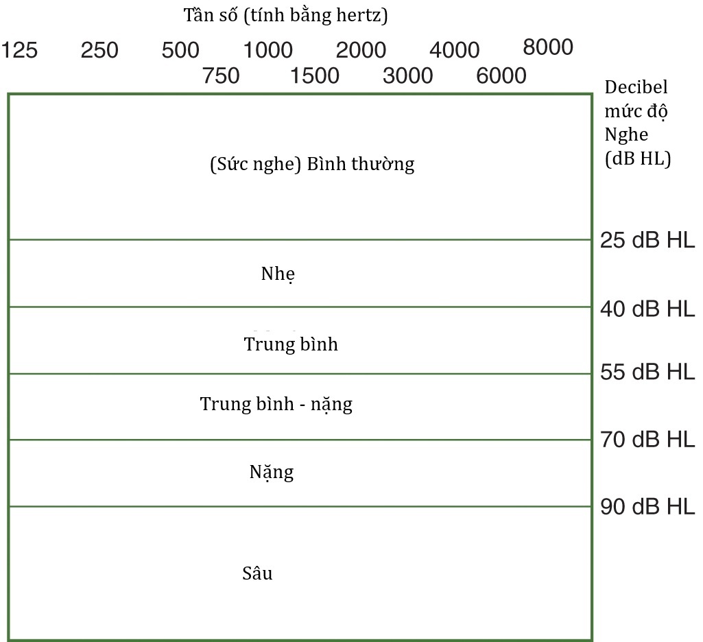 Mức giảm thính lực từ 25 dB trở xuống được coi là thính lực bình thường ở người lớn. Giảm thính lực liên quan đến tuổi tác ảnh hưởng đến thính lực ở tần số cao nhiều hơn tần số thấp. |