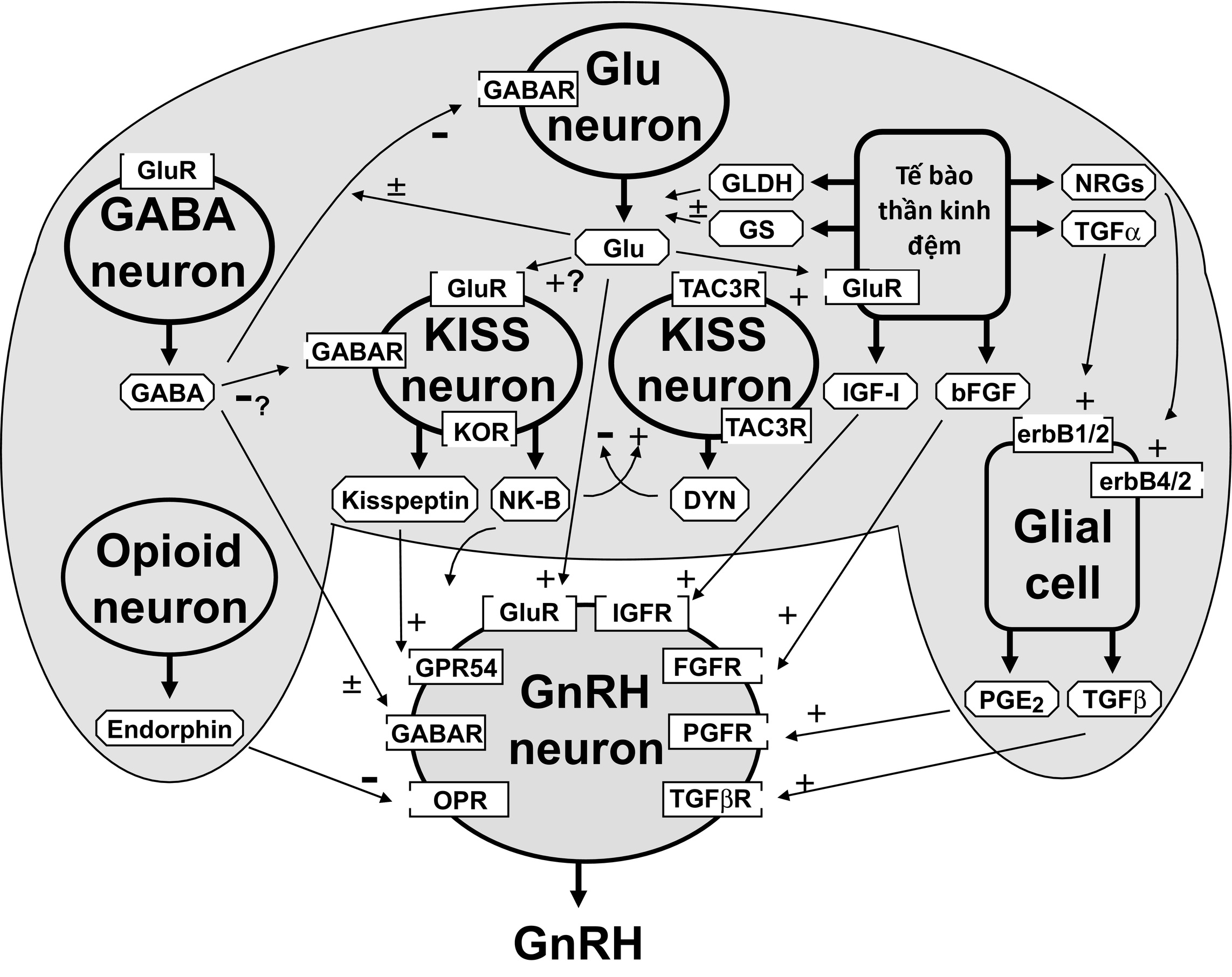 Sự gia tăng bài tiết GnRH ở người ban đầu được suy ra khi Kastin, Job, Grumbach và các cộng sự của họ chứng minh rằng trẻ em tiền vị thành niên có dự trữ LH và FSH trong tuyến yên có thể giải phóng được bởi GnRH (Hình 16.6 và 16.9). Sau đó, có báo cáo rằng ở người, sản lượng một mảnh GnRH có hoạt tính miễn dịch bắt đầu tăng vào cuối thời thơ ấu và tăng đến mức người lớn trong tuổi dậy thì. Các nghiên cứu trên chuột cho thấy GnRH vùng dưới đồi tăng trong suốt tuổi dậy thì.