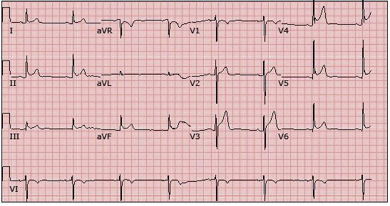Tái cực sớm trên ECG 12 chuyển đạo. Tái cực sớm 3 mm ở các chuyển đạo bên và dưới.